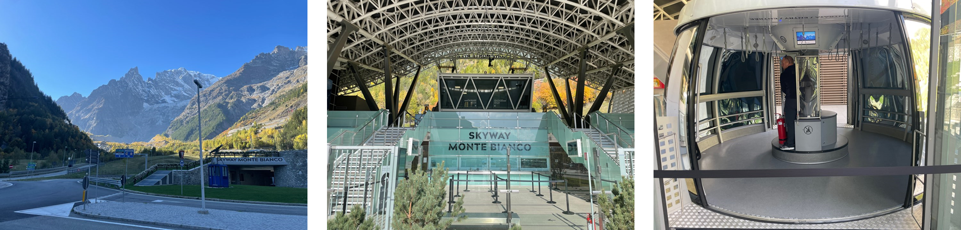 다음날 아침에는 고대하던 몽블랑을 보러 스카이웨이 몬테 비앙코(Skyway Monte Bianco)를 찾았다. 스카이웨이는 중간 지점인 파빌리온(Pavillion)까지 가는 왕복 티켓과 정상인 뿌왕뜨 엘브호네(Pointe Helbronner)까지 가는 왕복 티켓으로 나뉘어져 있으며, 온라인으로 구매할 시 각각 인당 25유로와 55유로에 판매되고 있다.