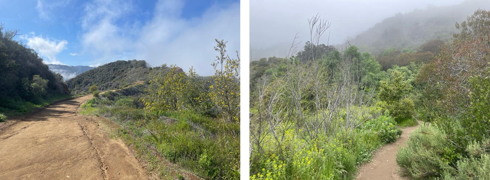 그다음 왼쪽으로 꺾어 계속 높은 고지를 향해 올라가면 이스트 토팽가 파이어 로드(East Topanga Fire Road)를 타게 되는 것이다. 이 트레일도 다음 지점까지 동일하게 1.9마일(약 3km)동안 이어진다. 여기서부터는 길의 폭이 5~6명은 지나다닐 수 있을 만큼 넓어진다. 그래서 트레일 러닝을 하거나 마운틴 바이크를 타고 다니는 사람들도 많다.