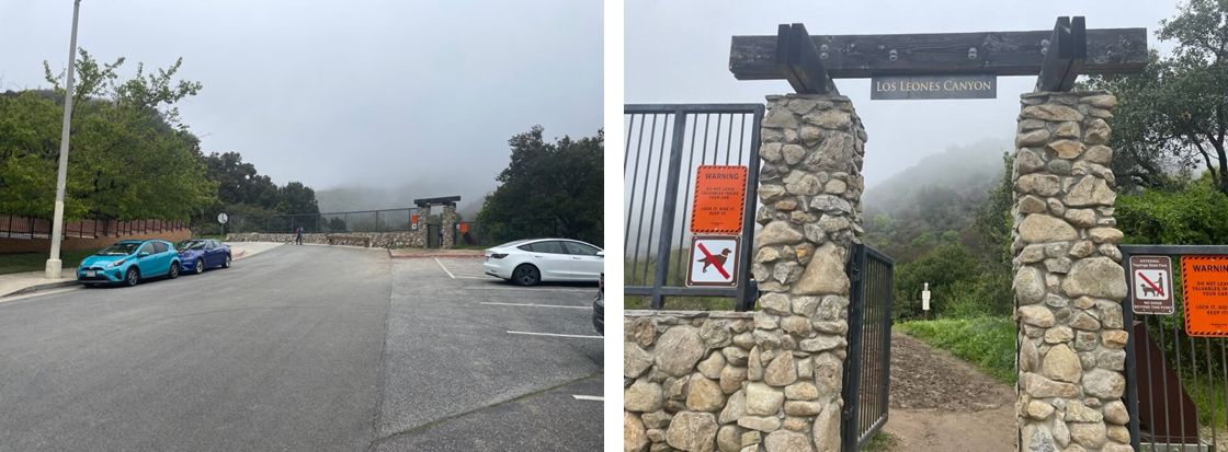 로스 레오네스 드라이브는 생각보다 길기 때문에, 가능하면 차로 이동할 수 있는 끝까지 올라온 다음에, 내려가면서 주차 공간을 찾는 것이 좋다. 로스 레오네스 드라이브의 끝자락에 오면 예수 그리스도 후기 성도 교회(The Church of Jesus Christ of Latter-day Saints)가 있다. 그 교회 옆에 10대 정도의 차가 들어가는 마지막 주차 공간이 있으며 트레일의 출발지점에 붙어있다.