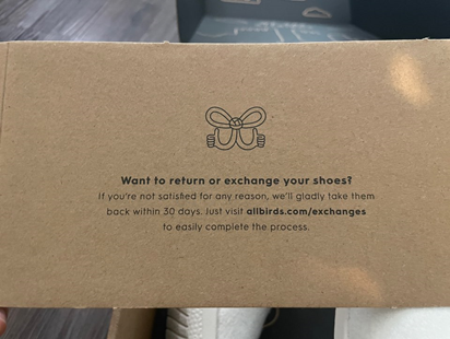 그밖에도 박스를 이용해 필요한 안내나 광고 문구를 넣은 것이 인상 깊었다. 보통 이러한 내용들을 인쇄한 종이가 별도로 들어가는데, 올버즈에서는 쓰레기를 줄이기 위해 최대한 슈박스를 활용하는 모습이었다. 그러니까 신발을 제외하고는 재활용되는 종이로 만든 가방과 슈박스, 슈셰이퍼가 전부였다는 것이다.
