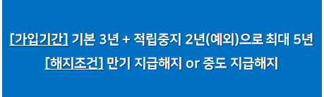 단, 적립중지 신청을 하더라도 정부지원금은 최대 3년까지만 지원이 된다. 더불어 가입기간 연장은 1회에 한해서만 가능하고, 연장 후에 변경이나 취소가 불가하다.