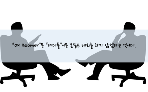 물론 기성세대에 대한 청년세대의 불만이 한국에만 있는 것이 아니다. 미국에도 “Ok Boomer”라는 표현이 있다. 쉽게 말해 “네다틀”의 미국 버전인 것인데, 우리 것보다 어감이나 뜻이 훨씬 순하다.