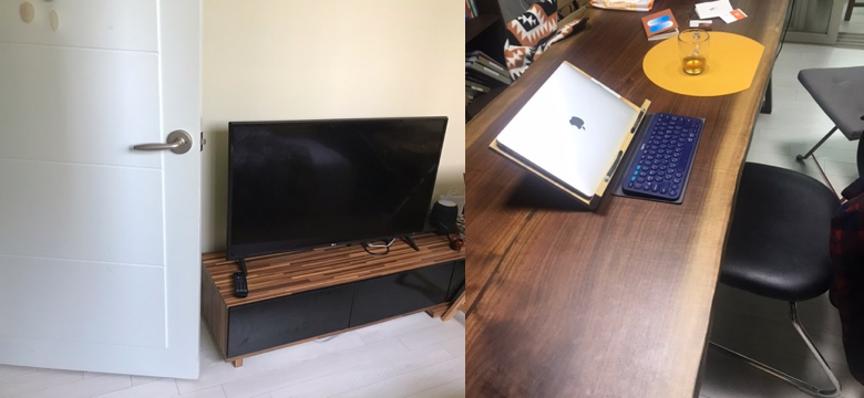 요컨대 가구 하나로 생활과 관계가 바뀌는 걸 직접 경험해보니 ‘거실에 둔 우드슬랩 테이블은 단순히 물건을 올려놓는 도구 이상이다,’ 라고 자신있게 말할 수 있겠다.