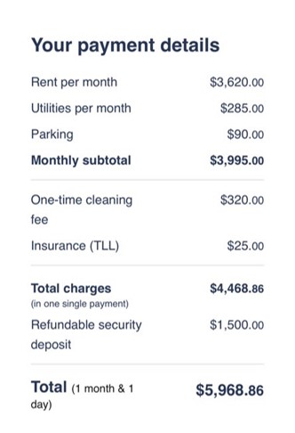 좋은 만큼 비싸다! 물론 숙소마다 차이가 있으니, 예산 안에서 찾아볼 수는 있으나 비슷한 조건이라면 Airbnb보다는 비쌀 것이다. 기본 렌트에 관리비, 주차비, 청소비, 보험과 디파짓까지 추가가 되니 이 점도 검색할 때 염두에 두면 좋다.