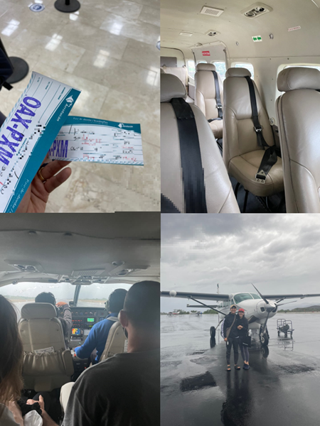 아에로투칸(Aerotucan)이라는 항공사에서 운행하는 경비행기로, 최대 10명 정도 탑승할 수 있는 크기였다. 이 또한 재미난 경험일 거라는 생각에 우리는 아에로투칸 항공권을 두 장 샀다. 푸에르토 에스콘디도로 가는 비행기 안에는 우리 말고 네덜란드에서 여행 온 한 커플이 더 있었다. 조종사와 부조종사까지 포함해 6명이 전부였다.